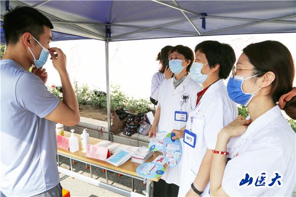 活动紧紧围绕“喜迎二十大,奋进新征程”的主题展开。活动现场,消毒供应中心的南丁格尔志愿服务队开展了“成人心肺复苏术”的现场急救培训,宣传普及基础急救知识,教会群众自救互救技能,赢得抢救生命的黄金时间,加强了对心肺复苏的知识。感染管理科为现场群众讲解了常态化疫情防控措施,使群众认识到人人都是常态化疫情防控的责任主体,并指导使用七步洗手法口诀正确洗手及正确佩戴口罩,养成健康的生活方式。护理部、医务处、质控部进行了科普知识宣教,内容涵盖慢病管理、静脉治疗、艾滋病预防等咨询服务。