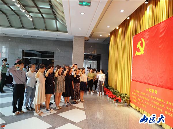 7月1日上午,研究生党支部书记郑瑞丽带领迎泽校区12名党员赴彭真生平暨中共太原支部旧址纪念馆参观学习。在纪念馆大厅,面对鲜红的党旗,郑瑞丽带领全体党员高举右拳,共同重温入党誓词。