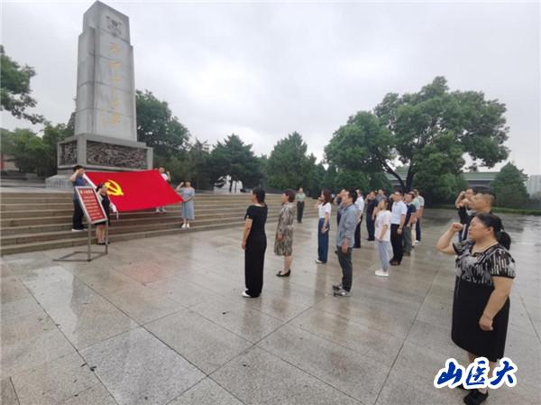 到达太原解放纪念馆后,党支部全体党员在烈士纪念碑前默哀,缅怀为解放太原牺牲的革命烈士。随后,全体党员面对党旗重温入党誓词。铿锵的誓言、坚定的承诺,让每一位党员的心灵再次受到震撼、洗礼和教育。