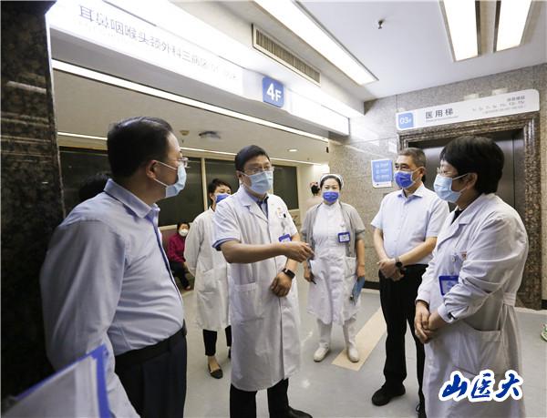 在1号住院楼入口处,张瑞平要求工作人员充分认识目前疫情防控的严峻形势,始终保持高度警惕,落实落细疫情防控各项措施,做好住院部管理。同时要求强化各住院楼出入口管控,严禁门诊患者进入住院部就诊和处置,防止交叉感染。