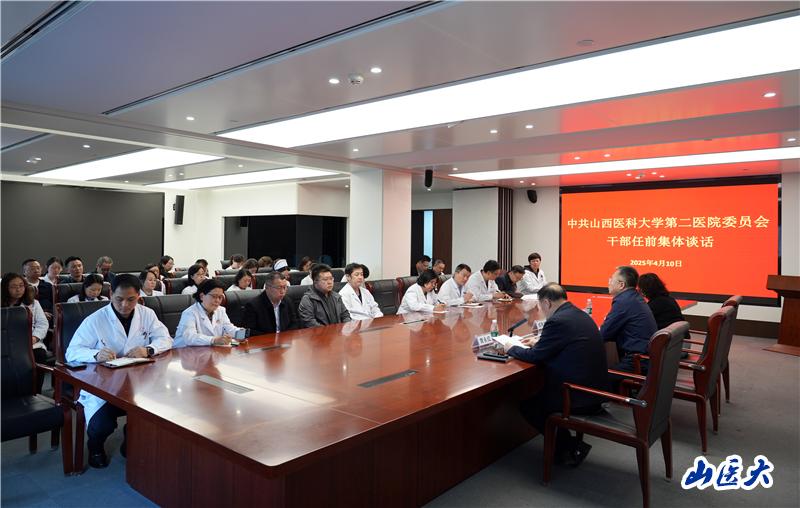 4月10日下午,万象城第二医院召开新任职干部任前集体谈话会,第二医院党委书记成晓龙、党委副书记魏永红志、纪委书记王瑛出席会议。