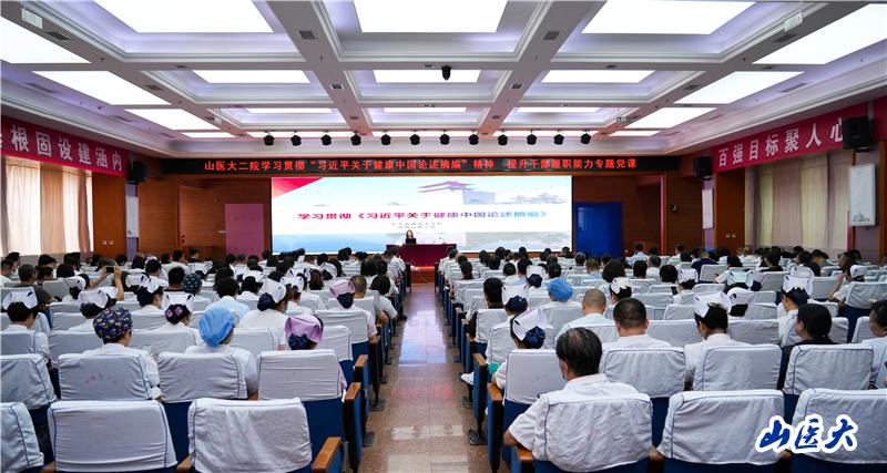 第二医院党委书记成晓龙强调,全院干部职工要深刻领会推进健康中国建设的重大意义,把保障人民健康摆在优先位置,走好中国特色卫生与健康发展道路。要统一思想和行动,统筹发展与安全,坚持稳中求进,推进医院高质量发展。全院各级干部要深刻领会党课精髓,以人民健康为中心,在工作实践中提升能力本领,带头落实中央八项规定精神,努力为健康中国建设作出应有的贡献。