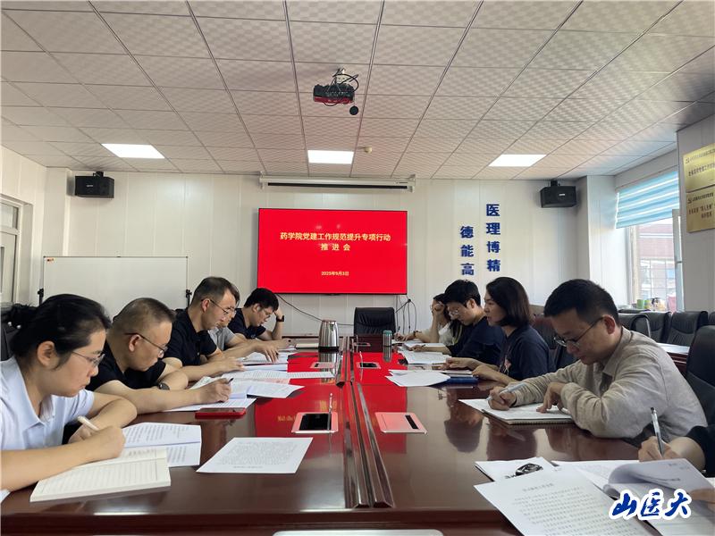 9月3日下午,药学院党委在中都校区明德楼403会议室召开党建工作规范提升专项行动推进会,对《万象城allwincity官网党建工作规范提升专项行动若干工作举措》进一步深入学习落实,对行动举措进一步细化安排。校党委组织部副部长燕燕出席会议,学院党委委员及全体党支部书记参加会议。会议由药学院党委书记李薇主持。