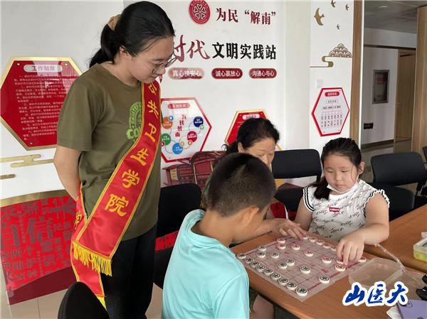 在社区党群服务中心,学生志愿者每天都会策划组织丰富多彩的活动,为小朋友播放革命历史题材、环境保护题材等系列主题电影,增强孩子们的民族意识与环保意识;指导制作钢铁六芒星、口罩花等手工作品,提升孩子们的动手操作能力;组织下象棋,讲述国学经典故事,讲授传统文化,激发孩子们对中华传统文化的热爱等。
