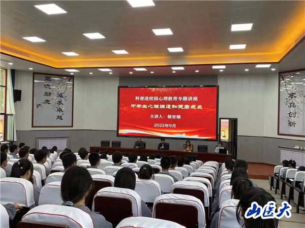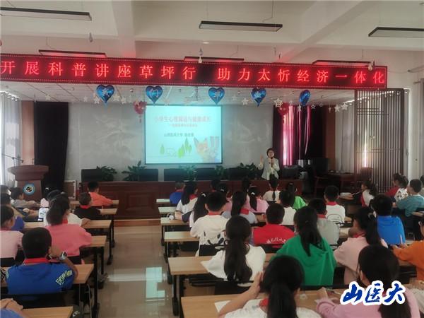 在太原市尖草坪区科协主办的“开展科普讲座草坪行 助力太忻经济一体化”活动中,杨官娥分别为恒大御景湾小学、西庄小学、赵庄小学的学生进行了题为“小学生心理调适与健康成长”讲座;在吕梁市科协主办的科普活动中,杨官娥教授分别为文水二中和文水中学高二学生进行了题为“中学生心理调适与健康成长”讲座。