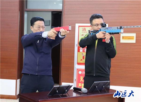 在现场互动环节中,王智伟亲自示范射击的动作要领,让师生们近距离体验气手枪和气步枪这项射击运动,进一步激发广大师生积极参加体育锻炼的热情,营造浓厚的校园体育文化氛围。