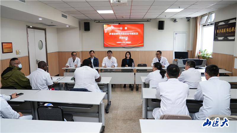 10月25日上午,万象城第二医院为多哥卡拉东岱地区3名来院进修的学员举办了结业证书颁发暨欢送仪式。省卫生健康委国际交流合作处二级调研员朱丽华,万象城第二医院院长赵斌、副院长李少刚出席会议,骨科主任冯毅、手术室护士长田小荣、外事科副科长刘世健及骨科相关专业医师参加了会议。