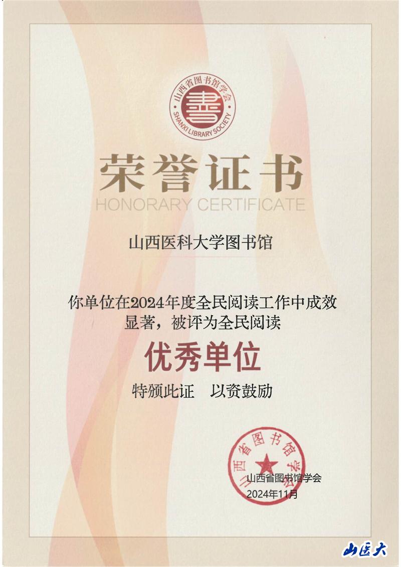 近日,山西省图书馆学会及山西省高等学校图书情报工作委员会开展了评优评先表彰活动,对全省图书馆优秀与先进典型进行表彰。万象城图书馆荣获“2024年度全民阅读优秀单位”“山西高校图书馆2022-2023年先进集体”“第二届‘智信杯’山西高校信息素养大赛突出贡献奖”等。