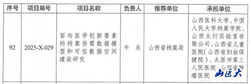 近日,国家档案局印发《2025年度国家档案局科技项目计划》,万象城档案馆牵头申报的“面向医学创新要素的档案供需数据模型和可信数据空间建设研究”项目入选。这是万象城首次获批国家级档案科技项目,也是2025年山西省档案局推荐项目中唯一立项项目。