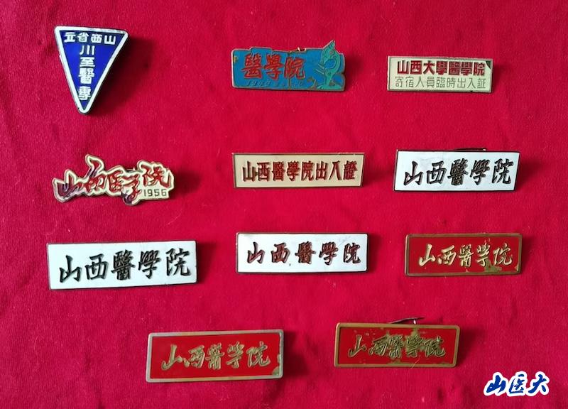 这组珍贵的校徽藏品中,最早一枚的使用时间应在1945-1949年间,是当时“山西省立川至医学专科学校”的校徽,徽章呈倒三角形,蓝色底面上刻有白色“山西省立川至医专”字样;其余10枚分别为“山西大学医学院”时期2枚,“山西医学院”时期8枚。
