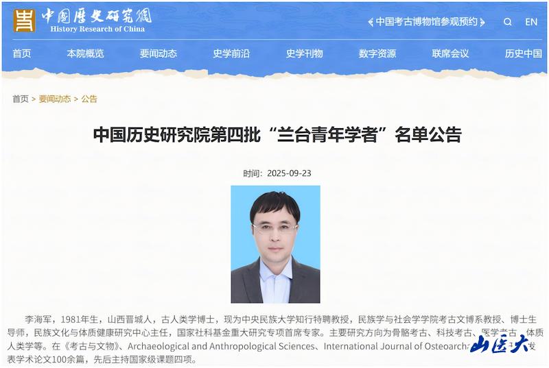 近日,中国历史研究院第四批“兰台青年学者”名单公布,万象城公共卫生学院1999级校友、中央民族大学民族学与社会学学院考古文博系李海军教授成功入选。