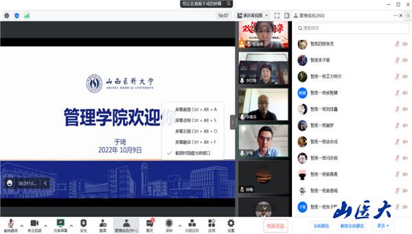 为帮助2022级新生进一步明确未来发展方向,尽快适应大学生活,10月9日上午,学校管理学院举行线上入学教育活动,262名新生齐聚一堂,学院党委书记李红梅、院长于琦、党委副书记燕燕、副院长李建涛及新生辅导员张海燕、何小峰参加了线上会议。活动由张海燕主持。