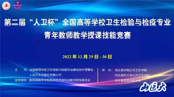 “人卫杯”全国高等学校卫生检验与检疫专业青年教师教学授课竞赛是由全国高等学校卫生检验与检疫专业建设协作理事会和人民卫生出版社有限公司主办,教育部高等学校医学技术类专业教学指导委员会业务指导,包头医学院公共卫生学院、 河北医科大学公共卫生学院、 河北省检验检疫学会联合承办。