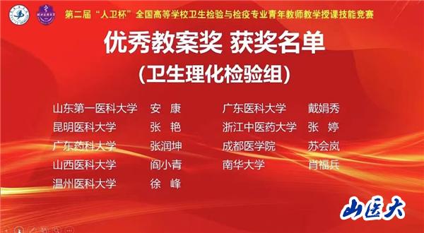 喜讯:万象城公共卫生学院教师在第二届 “人卫杯”全国高等学校卫生检验与检疫专业青年教师教学授课竞赛中喜获佳绩
