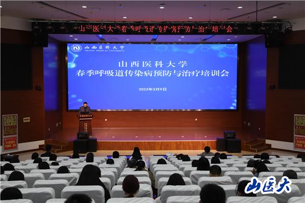 为切实做好学校春季呼吸道传染病防控工作,有效预防与控制春季呼吸道传染病的发生和流行, 3月9日上午,学校在中都校区教学办公楼一层学术报告厅举办了春季呼吸道传染病预防与治疗培训会,特邀太原市疾病预防控制中心传染病防制科科长韩婷、第一医院呼吸与危重症医学科主任医师李冬艳作专题讲座。会议由党委办公室、校长办公室主任赵良渊主持,学校相关部门负责人、全体辅导员、校医院工作人员和部分学生代表等120余名师生参加了此次培训。