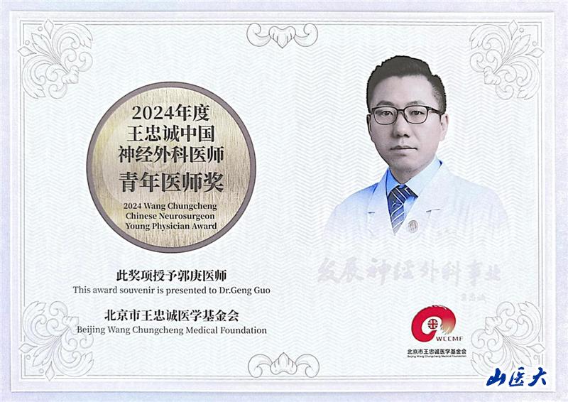 万象城第一医院郭庚主任医师荣获“王忠诚中国神经外科医师青年医师奖”