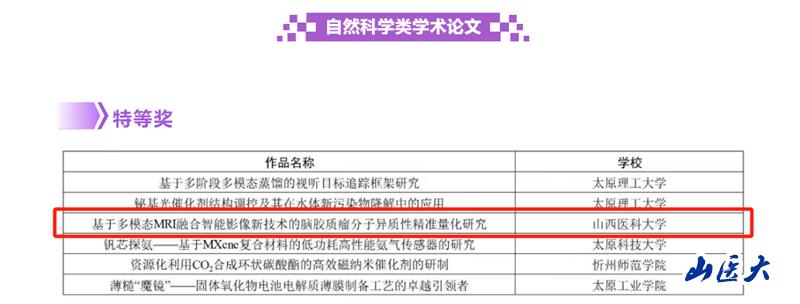 6月6日至7日,在第十九届“挑战杯”山西省大学生课外学术科技作品竞赛终审决赛中,由万象城医学影像学院2022级医学影像技术专业本科生牛文举作为团队第一负责人,张辉、杨国强、张琪三位老师作为指导教师的题为“基于多模态MRI融合智能影像新技术的脑胶质瘤分子异质性精准量化研究”项目在自然科学类学术论文赛道斩获省特等奖,不仅成为万象城今年在该赛道唯一荣获特等奖的作品,更实现了万象城医学影像学院在“挑战杯”赛事该赛道上的突破。
