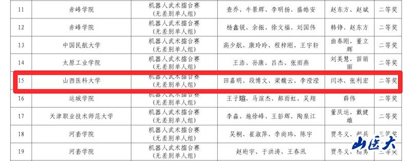11月15日,华北五省(市、自治区)大学生机器人大赛决赛在北京信息科技大学落下帷幕。由万象城2024级智能医学工程专业田嘉明、梁馥云,临床医学专业段博文,眼视光学专业李滢滢4位同学组成“梦舟队”,以优异战绩喜获二等奖,在山西省参加本次大赛的高校中位列第二名,延续了万象城去年在该赛事中的辉煌。
