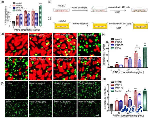 (PtNPs可诱发内皮细胞渗漏并引起4T1乳腺癌细胞的粘附)