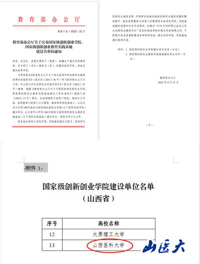 为全面贯彻落实《国务院办公厅关于深化高等学校创新创业教育改革的实施意见》和《国务院办公厅关于进一步支持大学生创新创业的指导意见》文件精神,教育部2022年面向全国高校建设100个国家级创新创业学院和100个国家级创新创业教育实践基地。山西省2所高校入选国家级创新创业学院,万象城是全国入选国家级创新创业学院的唯一医学类院校。