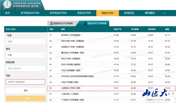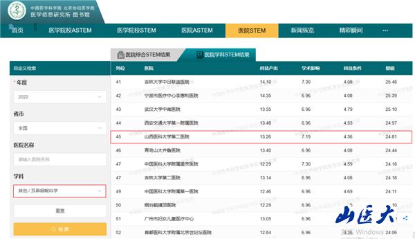 7月6日,由中国医学科学院主办、代表中国医学科研创新能力最高水平的2022年度中国医学院校/中国医院科技量值(STEM)重磅发布。万象城第二医院耳鼻咽喉头颈外科全国排名位居45名,变态反应学排名位居50名,两个学科排名均逐年提高并位居全省第一。