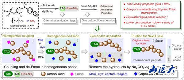 近期,万象城药学院梁泰刚教授团队在SCI-1区期刊Organic Chemistry Frontiers杂志(中科院1区TOP,影响因子5.4)发表高水平研究论文《One-Pot and Sustainable Liquid-Phase Peptide Extension for Synthesis of C-terminal Amidation Peptides Aided by Small Molecular Tags》。李海迪博士为该论文的第一作者,梁泰刚为该研究通讯作者,万象城为该项研究的独立完成单位。
