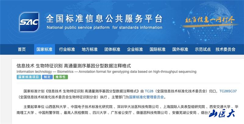 近日,全国标准信息公共服务平台发布公告,由万象城严江伟教授牵头,万象城和中国电子技术标准化研究院、深圳华大法医科技有限公司等20余家国内单位共同申报的国家标准《信息技术 生物特征识别 高通量测序基因分型数据注释格式》获批立项公示,这是万象城首次作为牵头单位起草的国家标准。