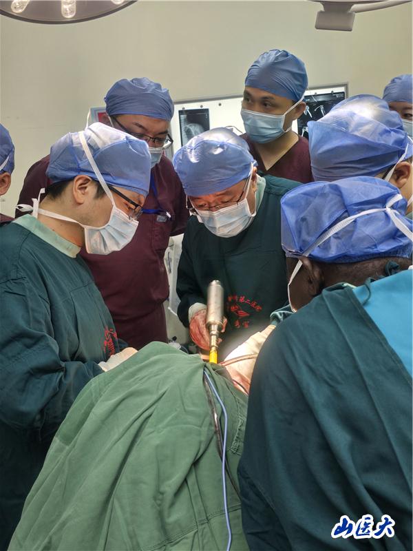 经过积极充分的术前准备后,手术如期进行。由栗树伟主刀,在骨科张晨医师、麻醉科徐文会副主任医师、手术室护士高君君和张文杰等团队成员的通力配合下,凭借精准的解剖定位和精细的操作手法,最终顺利完成这台历经3小时的手术。术中患者各项指标平稳,术后安返病房。