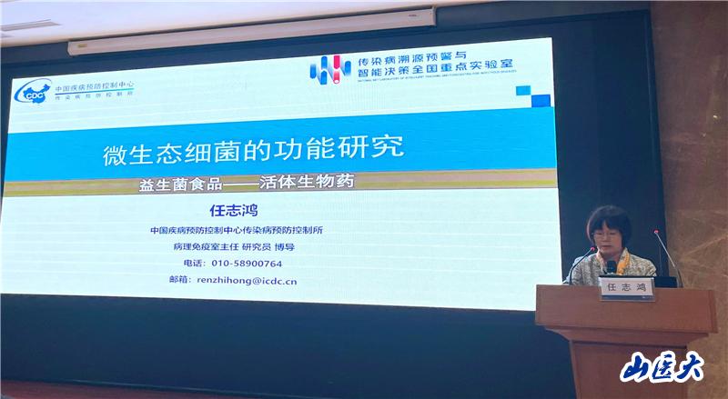任志鸿研究员以《微生态细菌的功能研究》为题,介绍了益生菌的概念、发展史以及在抗肠道耐药菌感染、免疫调节和抗呼吸道病毒感染中的作用。师生们就微生态细菌在健康领域的应用和未来发展进行了热烈的互动交流。