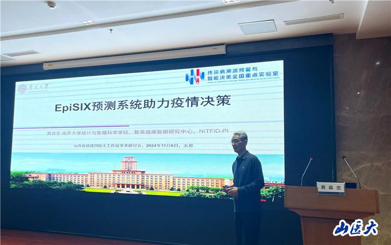黄森忠教授以《EpiSIX预测系统助力疫情决策》为题,详细介绍了EpiSIX预测系统在重大传染病疫情决策中的应用,包括疫情研判、预测报告以及防控策略的制定。黄教授的报告引起了在场师生的浓厚兴趣,大家就预测系统的具体应用和未来发展方向进行了深入的交流。