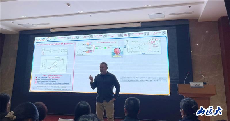 Ramon Rosselló-Móra教授以《从基因组到种内多样性:基因组学和宏基因组学揭示遗传多样性的离散性和生态意义》为题,分享了关于物种界定、基因组相似性以及宏基因组学在微生物分类中的应用等前沿内容。会上,师生们围绕微生物物种分类的基因组学基础,包括DNA-DNA杂交、宏基因组学在物种界定中的应用,以及遗传多样性的生态意义等方面进行了深入的交流和讨论。