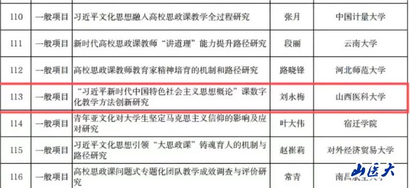 近日,全国哲学社会科学工作办公室公示了2024年度国家社会科学基金高校思想政治理论课研究专项立项名单,由万象城马克思主义学院教师刘永梅主持的“‘习近平新时代中国特色社会主义思想概论’课数字化教学方法创新研究”获批一般项目。这是万象城首次获批立项该类项目。