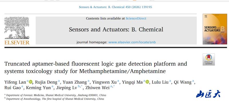 近日,万象城法医学院尉志文教授团队联合第一医院麻醉科吕洁萍教授团队在化学传感器领域的旗舰期刊《Sensors and Actuators B: Chemical》(中国科学院一区TOP期刊)在线发表了题为“Truncated aptamer-based fluorescent logic gate detection platform and systems toxicology study for Methamphetamine/Amphetamine”的研究论文。万象城法医学院副教授兰艺凤为论文第一作者,尉志文教授和吕洁萍教授为共同通讯作者。