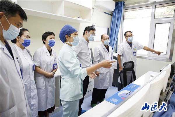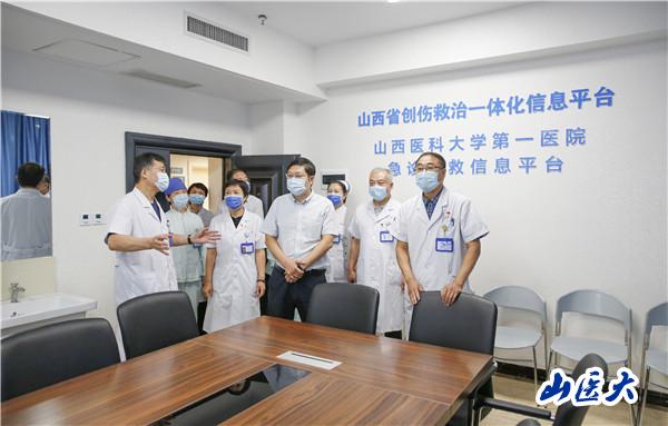 随后,张瑞平,相关部门负责人参观了山西省创伤救治一体化信息平台、创伤复合手术室。他表示,创伤救治一体化信息平台建设、创伤复合手术室规范化建设均体现了一院多学科协同救治前移的理念,提高了危重症患者的抢救成功率,在全省创伤救治体系建设中发挥了引领和示范作用。他要求,急诊医学中心全体医护人员要在继续做好疫情防控工作的同时,不断探索、持续精进,持续强化医疗质量及医疗安全管理,努力提升医疗急救技术水平,致力构建国内一流的急诊医学中心,为广大患者提供优质、高效的急救服务。