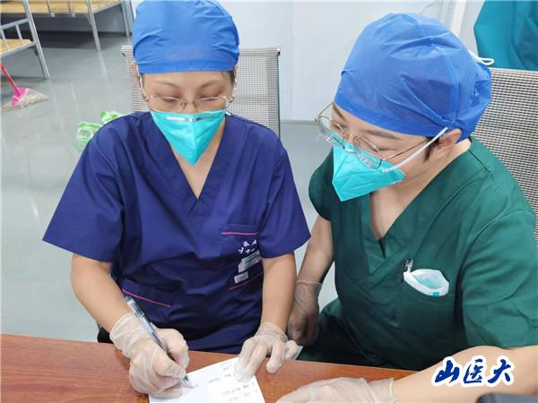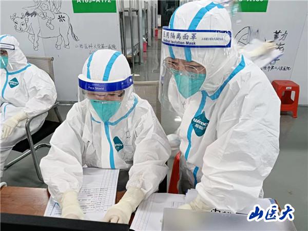 在山西援琼医疗队感染管理专家的督导下,队员们安全防护意识之弦紧绷,刚来前两日我们反复加强练习穿、脱防护服,筑牢第一道安全防线。8月19日上午,我带领组内4名有过援鄂、援沪经历的队员跟随唐珊护士长及其他队员先行进入方舱熟悉环境,完成开舱收治患者前的准备工作,一直忙到下午四点,拖着疲惫的身子回到驻地酒店不久,医疗队就接到晚上要收治一批从三亚转运过来患者的通知,队员们迅速进入战斗状态。按照排班,我们组是4:00-8:00的班次,我带领9名组员和长治队友一起,4个小时完成了73名患者的预检分诊、护理接诊、床位安置等工作。