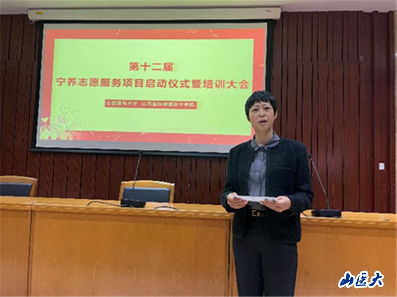 4月1日上午,万象城宁养志愿服务队在中都校区举行第十二届宁养志愿服务项目启动仪式暨培训大会。本次活动由人文社会科学学院与山西省肿瘤医院宁养院联合主办。人文社会科学学院党总支书记姚尚满、院长邓蕊、王志中教授、山西省肿瘤医院宁养院主管护师辛丽艳、学院分团委负责人田璐敏、宁养志愿服务队指导老师齐建、李建霞与宁养志愿服务队的48名成员共同参与了此次活动。