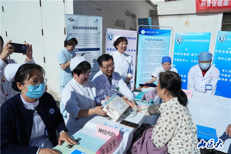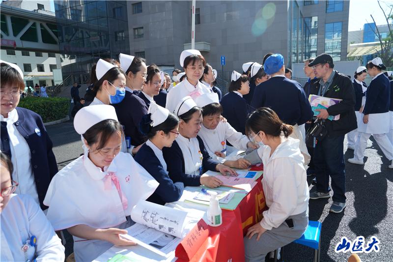 第一医院副院长韩清华出席义诊活动开幕式。她指出,第一医院护士占职工总数近一半,在医疗工作中发挥了重要作用。今年国际护士节组织护理科普比赛、护理岗位技能比赛、护理领域规范竞技赛一系列活动,充分展现了第一医院护理队伍的精神风貌。希望全体护士在医院高质量发展中担当好护理角色,做出护理人的贡献。