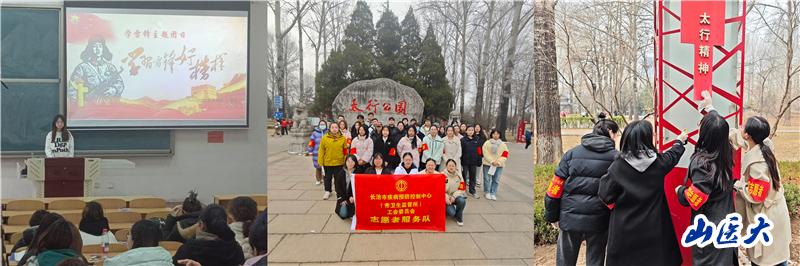 以团日活动内化雷锋精神。学院各年级团支部以团课学习、交流研讨、视频观看、我为身边人做好事等形式开展学雷锋团日活动,深刻学习雷锋精神的内涵和时代价值,从理论到实践,使同学们对雷锋精神有了更深的理解和感悟。实习的同学也以别样的形式开展活动,如长治市疾病预防控制中心实习的同学们走进了太行公园,助力清扫公园环境,志愿身影洒落在公园各个角落,他们将学雷锋行动融入新时代文明实践中,为市民营造了整洁温馨的生活环境。