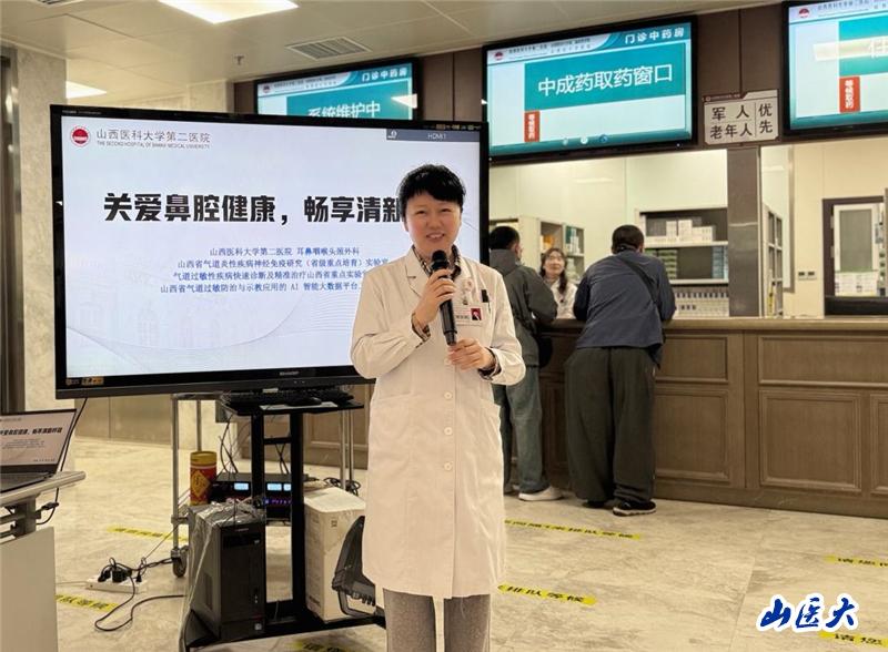 耳鼻咽喉头颈外科医护团队进行了专题科普讲座。杨利医师作了《科学认识与防治过敏性鼻炎》科普,解析了“免疫疗法”前沿,让大家了解过敏性鼻炎相关治疗,解析花粉、尘螨等过敏原应对策略,并指导正确使用鼻喷激素;赵洁护师作了《正确鼻腔冲洗,享受健康呼吸》科普,为大家介绍了为什么要进行鼻腔冲洗、冲洗液类型、适合冲洗的不同人群,演示了标准化鼻腔冲洗步骤,以避免错误手法损伤黏膜;韩世锴医师带来了《科学防治鼻病》的宣讲,让广大患者正确认识过敏性鼻炎,了解日常生活中如何区分过敏性鼻炎与感冒,以及“四位一体”的治疗策略;侯伟护师作了《鼻腔小知识》科普讲座,讲解了是否可以修剪鼻毛、鼻出血如何正确处理、擤鼻涕的正确方式,以及挖鼻孔的注意事项等知识,以此提示大家日常中要爱鼻、护鼻。