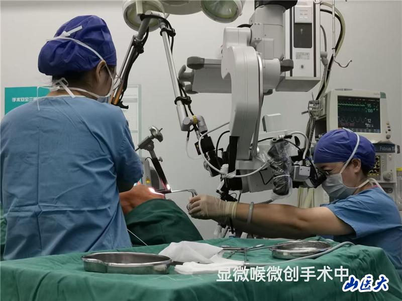 喉激光显微手术系统是由超脉冲二氧化碳激光、激光瞄准装置及手术显微镜组成,属于手术显微镜下实施激光喉显微手术的复合系统。喉腔解剖部位深,具有方向性强、高亮度特性的激光束通过支撑喉镜,对喉腔病变实施精细显微手术操作,是一种新微创治疗技术。近年来,第一医院耳鼻咽喉-头颈外科充分利用山西省“136”兴医工程与共建国家级区域医疗中心项目建设难得发展契机,构建耳鼻咽喉-头颈肿瘤诊断与治疗多学科团队 (MDT),实现专业化、规范化和个体化多学科协作治疗机制,自国内外引进创新性强、附加值高的高精尖医疗装备,使患者获得较高诊断水平、更好治疗效果。
