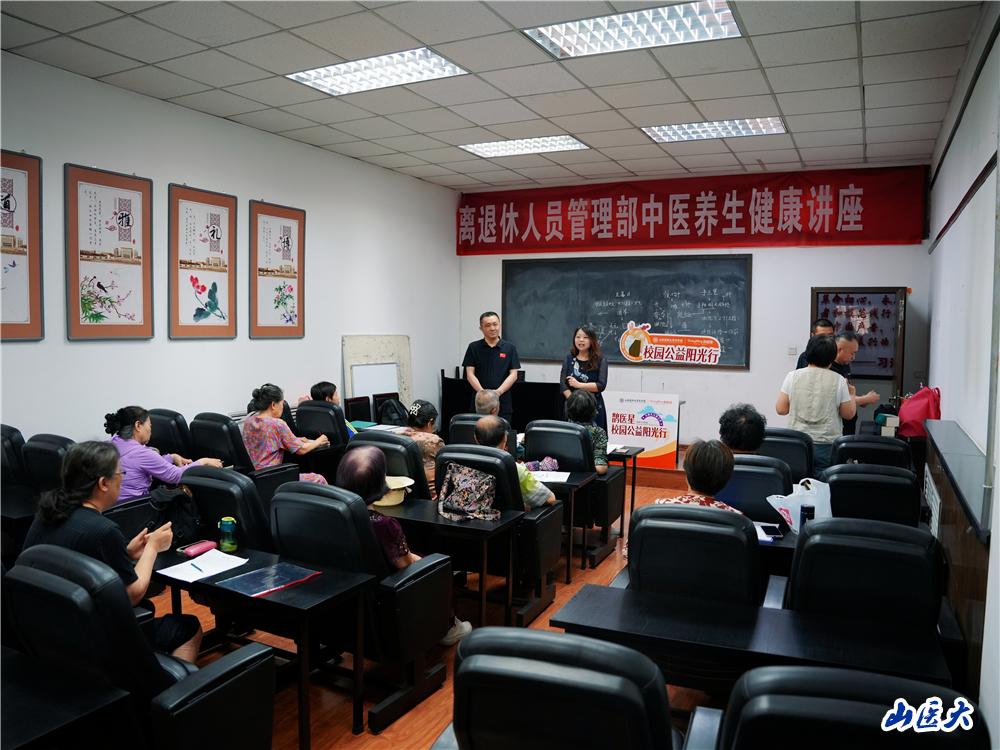 活动伊始,捐赠仪式温情满满。药学院党委副书记童玲、山西大学物电学院校外兼职硕士生导师邓韶辉、“鹊医星”创新创业团队学生组负责人梁泰帅博士代表“鹊医星”团队向校离退休人员管理部捐赠2台自主研发的“鹊医星”电子艾灸仪。离退休人员管理部部长华芮及十余名离退休人员代表共同见证这份凝聚科技力量的健康礼物,承载着对老同志的深切关爱。