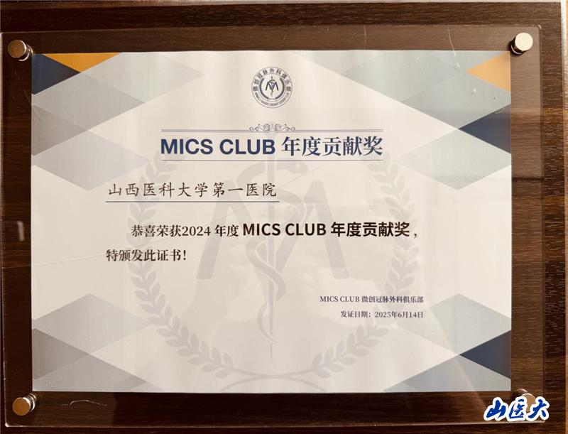 第一医院微创冠脉外科中心是山西省第一个以开展微创心脏冠脉搭桥为主要术式的单病临床中心,2024年4月成立,当年完成手术例数超过100台,这一优异成绩为医院带来良好的社会效益,因此,大会授予年度贡献奖。