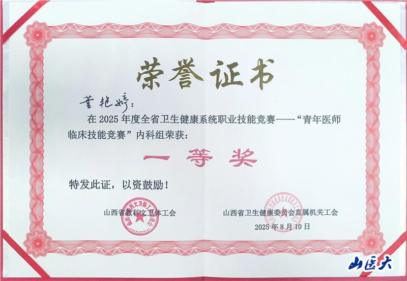 在本次大赛的个人奖项角逐中,董艳婷凭借其在内科领域全面过硬的临床技能、精准的临床判断和稳定的临场发挥,在“青年医师临床技能竞赛”中力拔头筹,斩获内科组一等奖,充分展现了万象城青年医师的顶尖个人实力。
