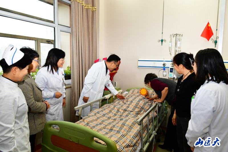 病床上的老人看到人们围拢在床边纷纷向他送上祝福,激动之情溢于言表,脸上洋溢着笑容,频频点头回应。老人的家属激动地说道:“感谢医院领导能够在百忙之中亲自到病房探望,并送来生日祝福,感谢医护人员的精心照护和关怀,我们把老人送到万象城allwincity官网第二医院来治疗,感到十分安心!”