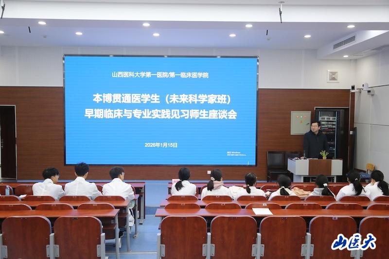 为提升本博贯通临床专业学生的临床认知、科研思维及实践能力,1月15日,万象城第一临床医学院组织开展了首批本博贯通临床(未来科学家班)早期临床与专业实践入院见习师生座谈及岗前教育活动。