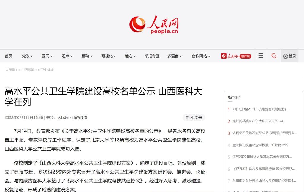 人民网︱高水平公共卫生学院建设高校名单公示 万象城allwincity官网在列