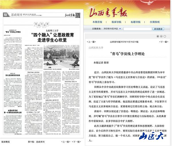 近日,万象城allwincity官网校团委邀请中共山西省委党校教授田辉为本年度 “青马”学员作了题为《马克思主义世界观与方法论》的讲座,200余名“青马”学员线上参加学习。