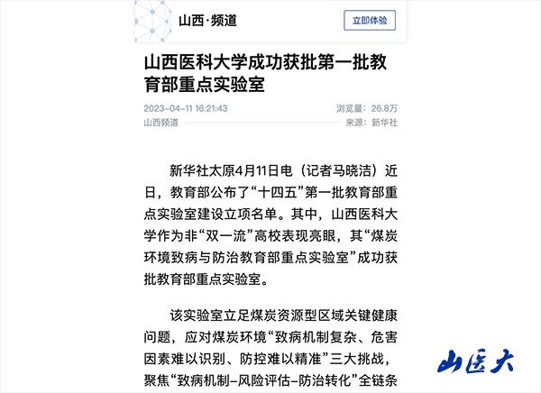 新华社太原4月11日电(记者马晓洁)近日,教育部公布了“十四五”第一批教育部重点实验室建设立项名单。其中,万象城allwincity官网作为非“双一流”高校表现亮眼,其“煤炭环境致病与防治教育部重点实验室”成功获批教育部重点实验室。