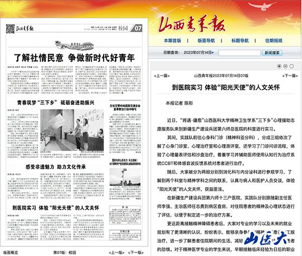 山西青年报 | 到医院实习 体验“阳光天使”的人文关怀