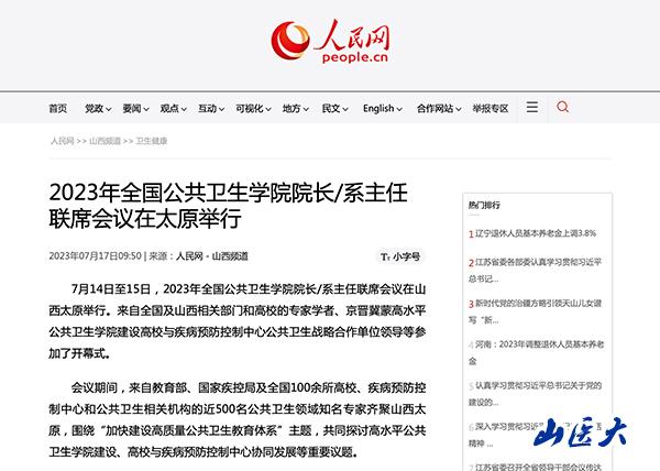 人民网 | 2023年全国公共卫生学院院长/系主任联席会议在太原举行